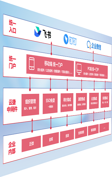 对协作平台提供支持服务,,,支持企业应用与协作平台对接,,,包含组织同步、、、消息集成、、、、待办集成等。。。支持目前主流的协作平台:钉钉、、、企微和飞书。。。