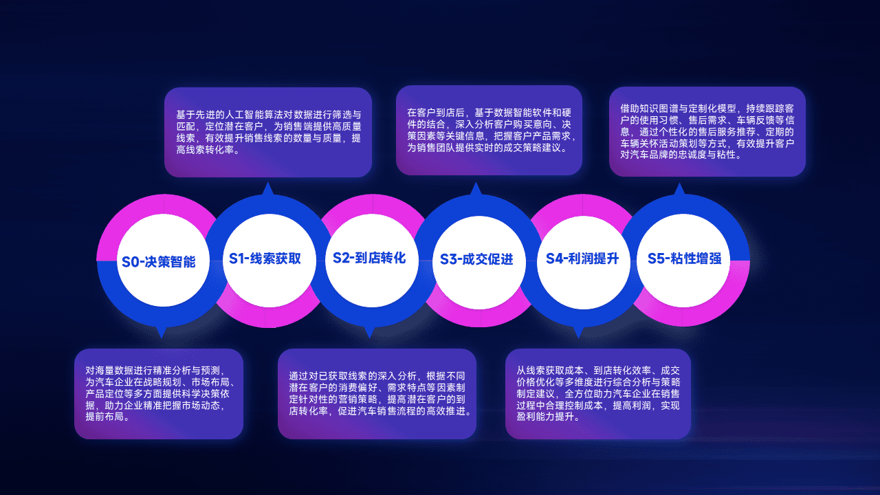 通过拓宽潜在客户来源、、、、优化线索分配并提高到店转化率,,,以增强销售效率。。。同时,,利用线索数据不断优化分析模型,,,有效提升转化率,,,扩大营销影响力。。。。